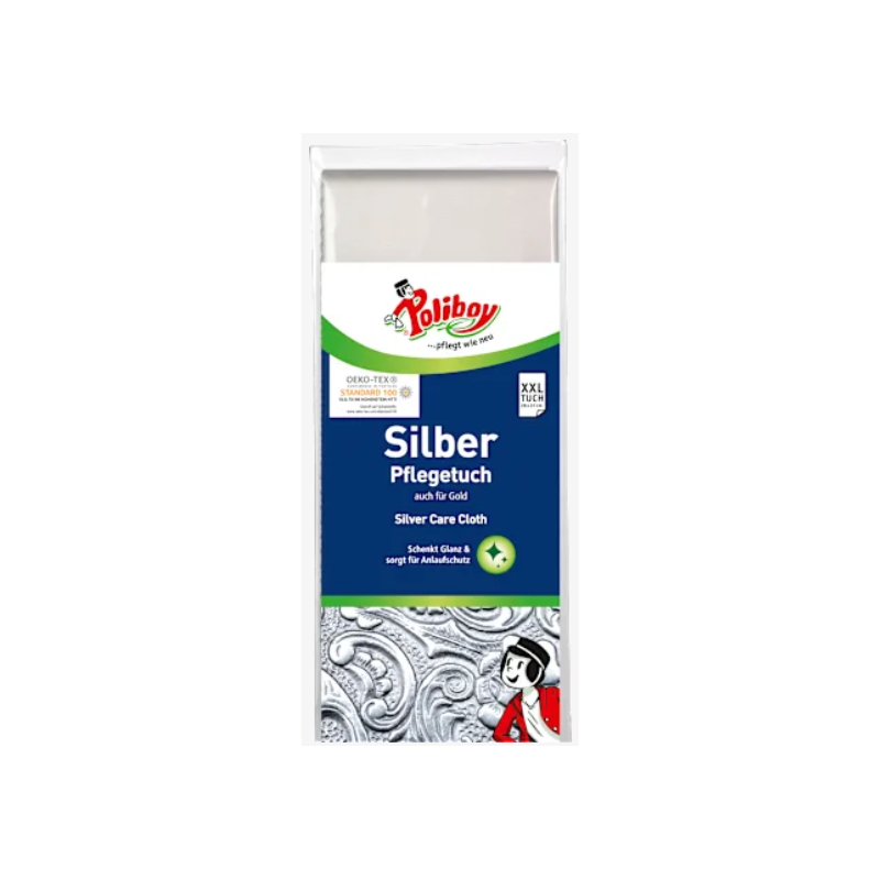 Poliboy Silver ściereczka do pielęgnacji srebra, idealna do czyszczenia zarówno przedmiotów ze srebra, jak i posrebrzanych. Nadaje się również do innych metali szlachetnych i nieżelaznych, takich jak mosiądz, miedź, cyna i złoto.
