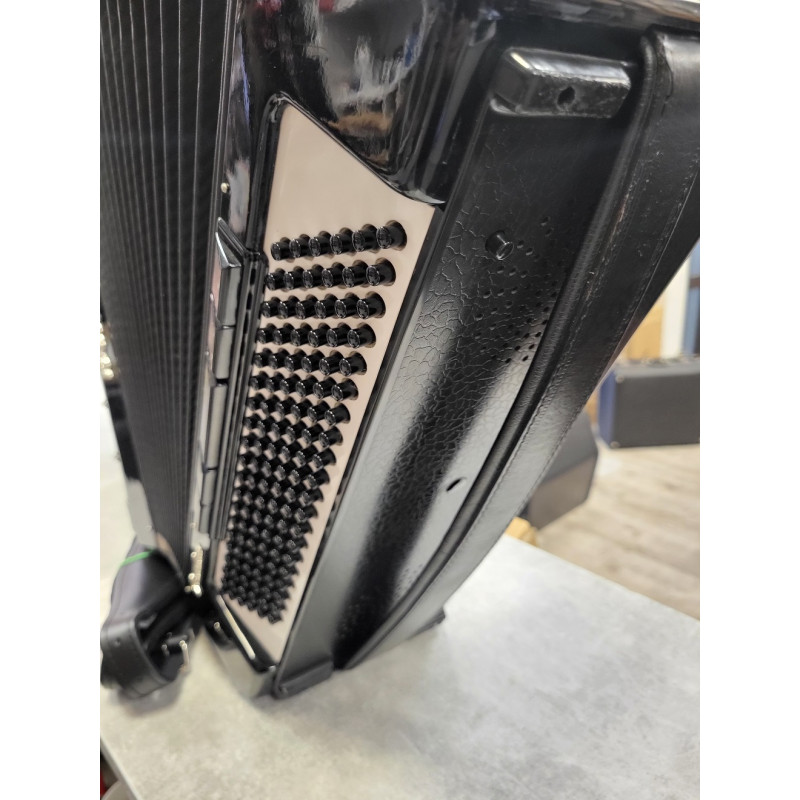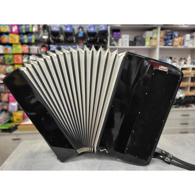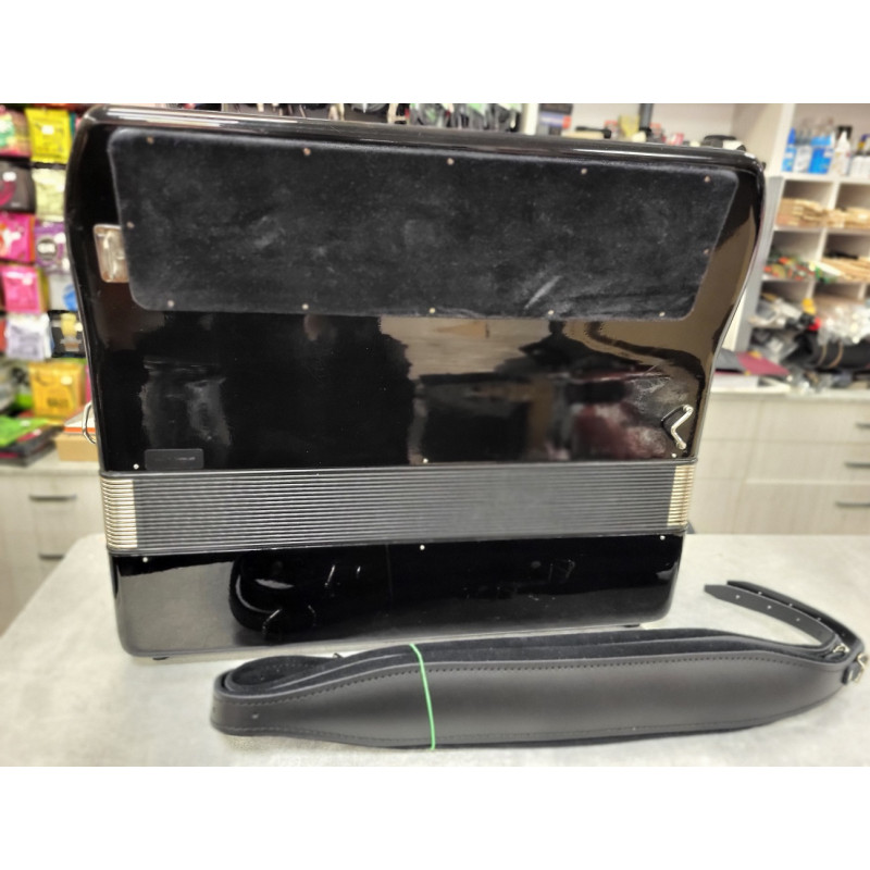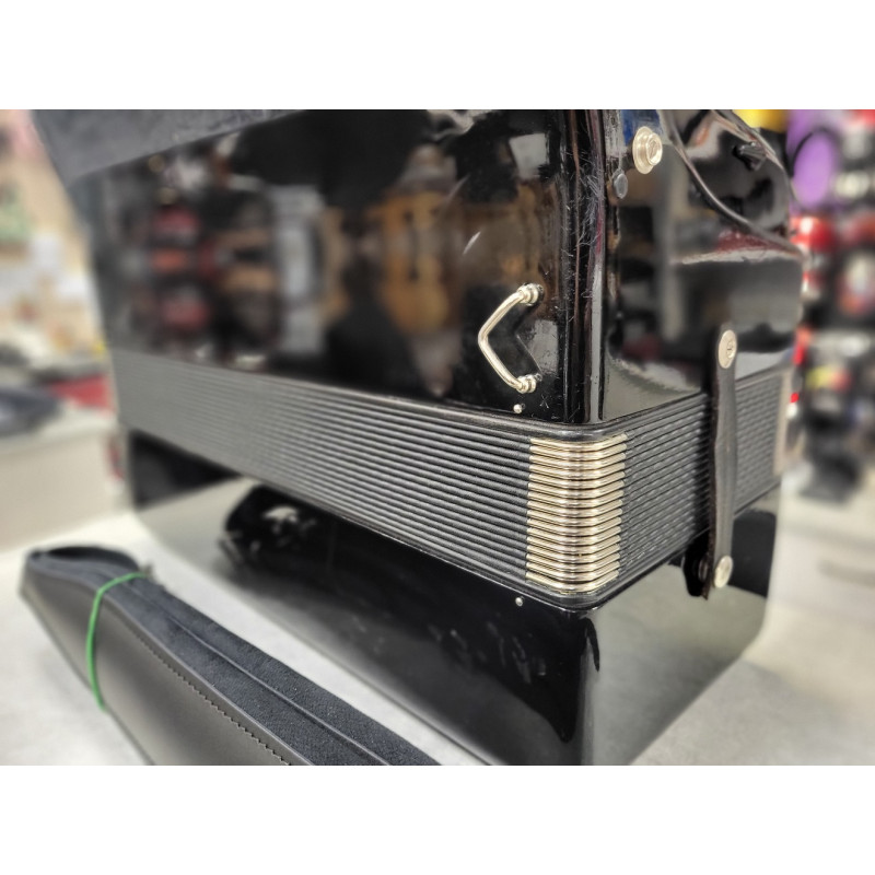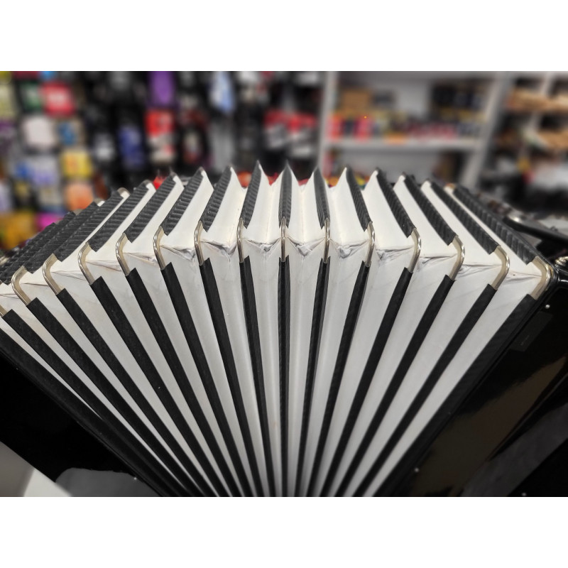 Bardzo solidnie wykonany instrument, ważący 11 kg - doskonała repetycja klawiatury guzikowej, solidne brzmienie basów dzięki obudowie z drewna i doskonała kompresja miecha.