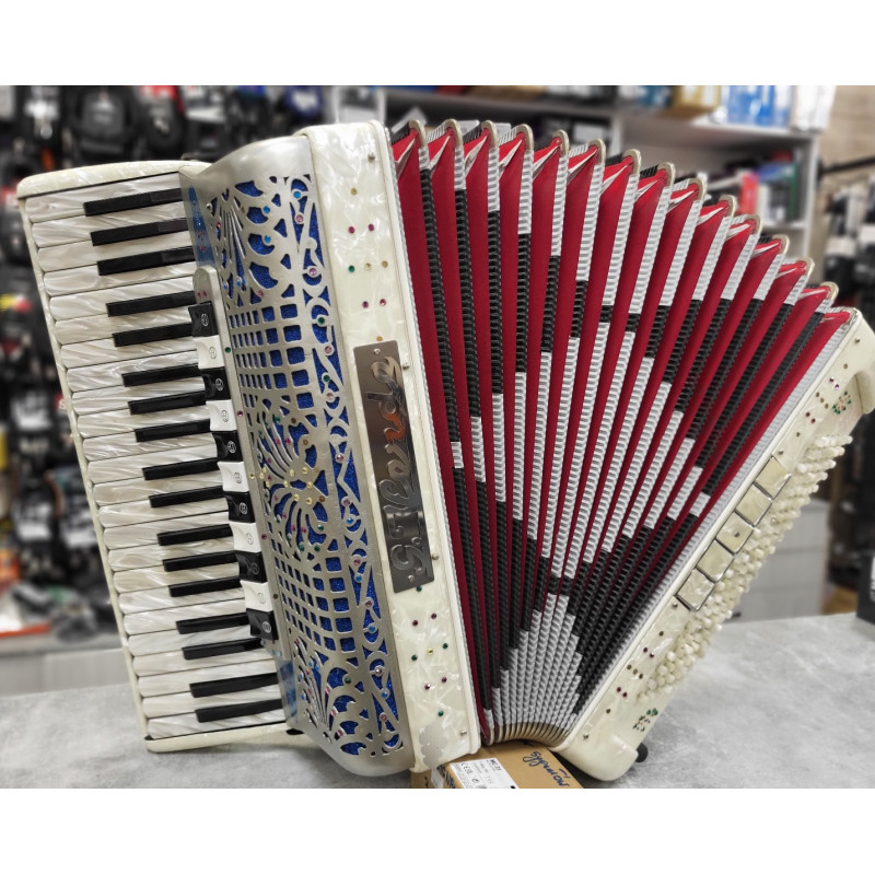 Instrument wielkości 120 bas o przepięknym brzmieniu tremolo Musette, w doskonałym stanie z futerałem.