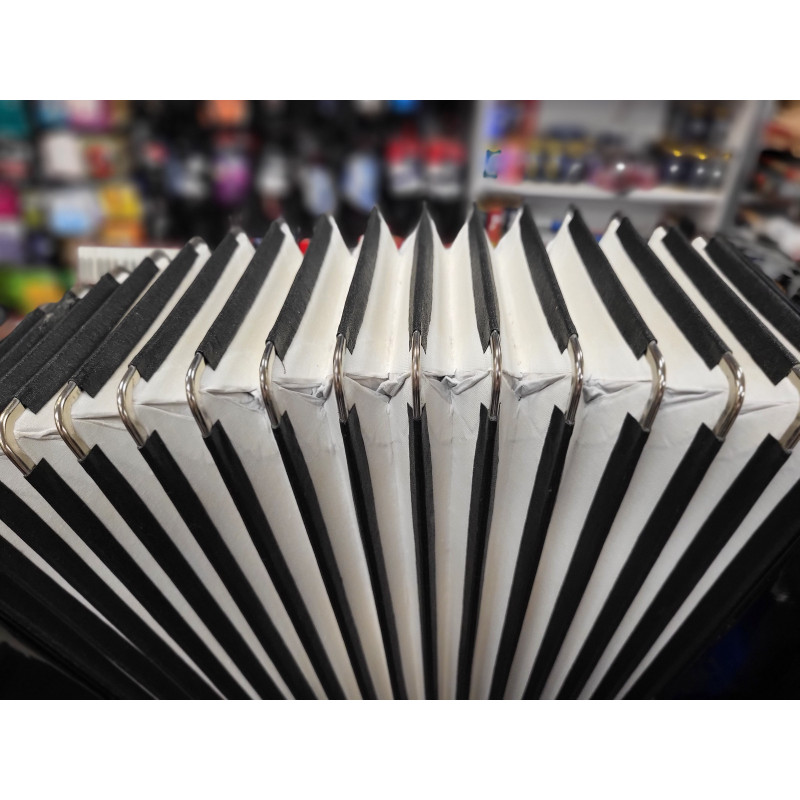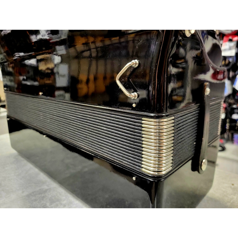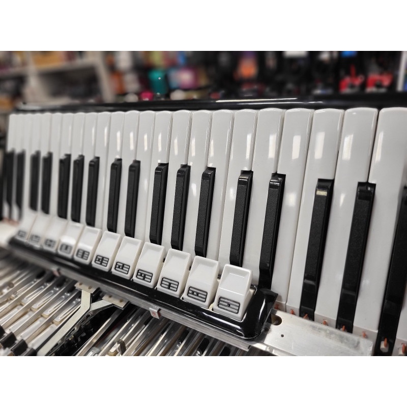 Akordeon w niemal fabrycznym stanie wizualnym i technicznym - został poddany sprawdzeniu. Akordeon bardzo mało używany, posiada nowe pasy nośne.