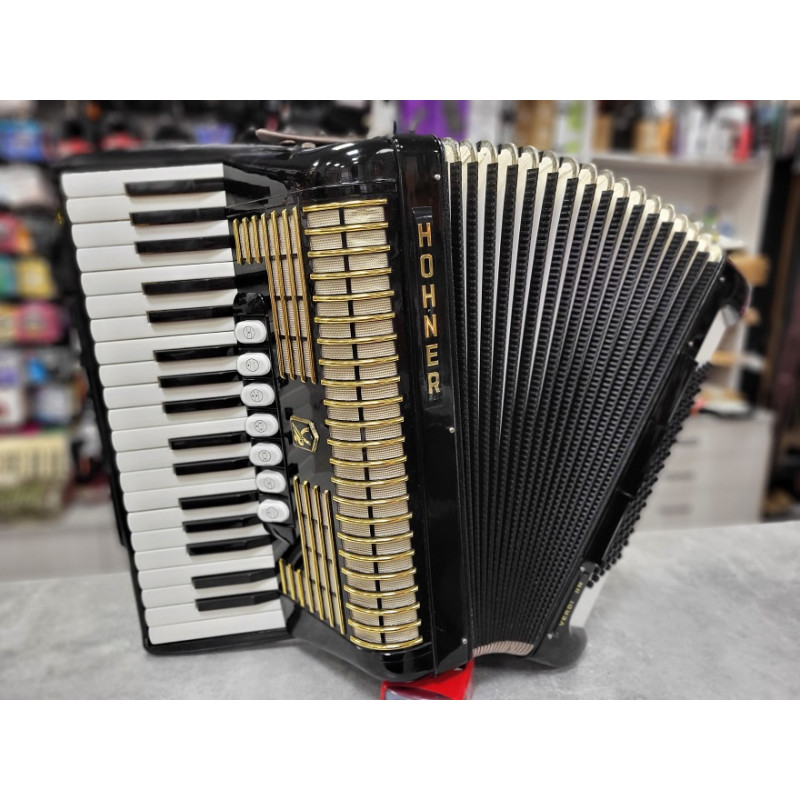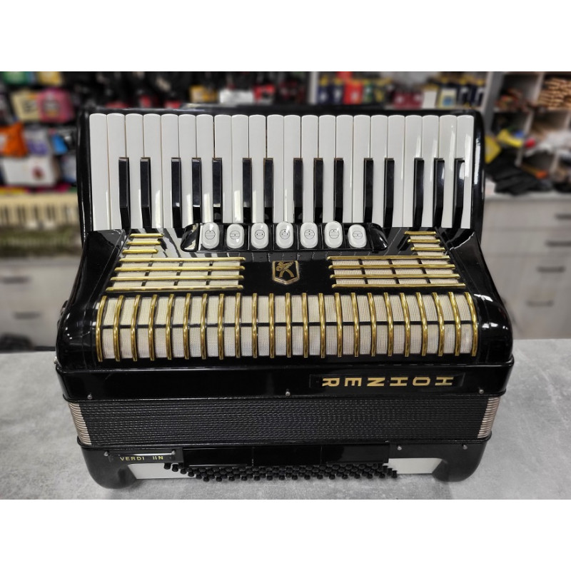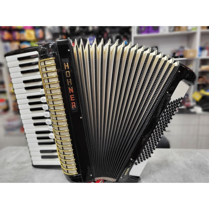 Sklep Muzyczny i Komis GAMA w Rzeszowie oferuje Państwu niemiecki akordeon wyprodukowany w zakładach HOHNER, model VERDI II, 96 basowy, o niewielkiej wadze 9,80 kg, wraz z futerałem.