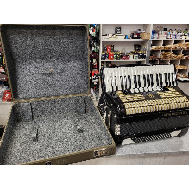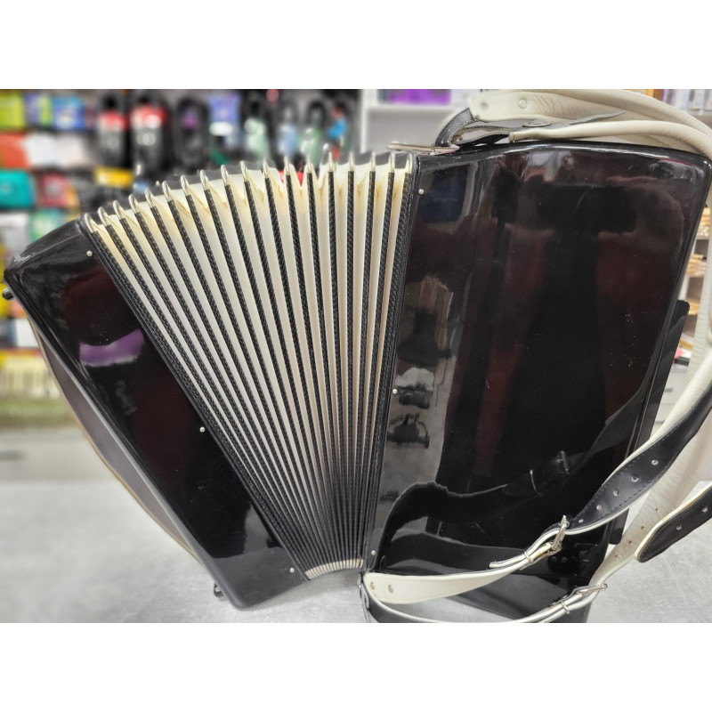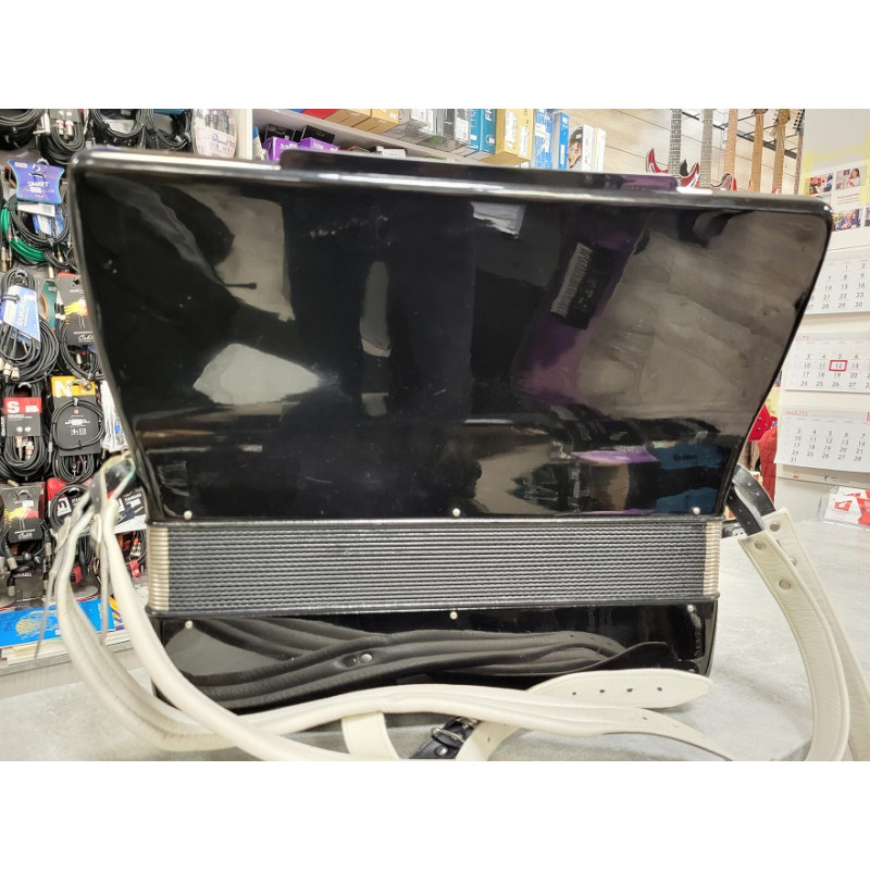 Akordeon prawidłowo używany, doskonale trzyma powietrze w miechu i stroi poprawnie. Posiada w zestawie pasy nośne oraz futerał.