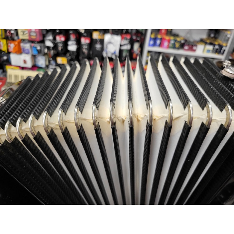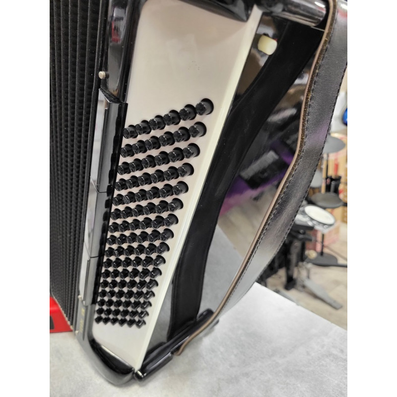Bardzo głośny i lekki instrument - doskonała repetycja klawiatury, solidne brzmienie basów dzięki obudowie z drewna i bardzo dobra kompresja miecha.