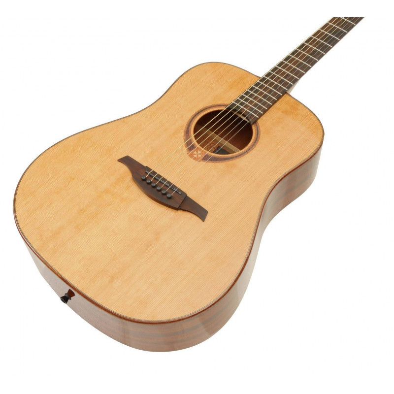 Dzięki korpusowi z khaya i jego top-u z czerwonego cedru z ciepłymi, zrównoważonymi barwami, T118 w dużej mierze zdominowały konkurencję w ich przedziale cenowym. Od korpusu "slim audytorium", który jest skupiony i precyzyjny w swoim brzmieniu do korpusu dreadnought, który jest potężniejszy, na pewno znajdziesz brzmienie pasujące do Twojego stylu. Seria Tramontane 118 jest dostępna w kilku wykończeniach, z wycięciem lub bez, w celu zaspokojenia wszystkich wymagań muzyków poszukujących wszechstronnego instrumentu.