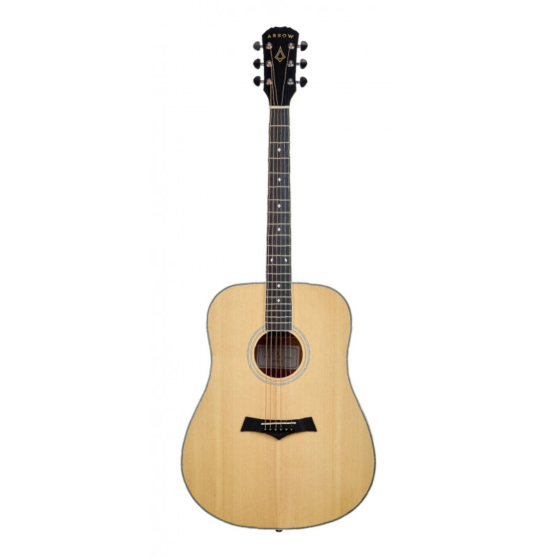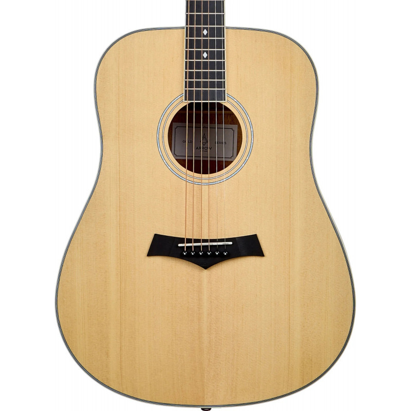 Gitary Arrow z serii Gold to dobrze wykonane instrumenty dla początkujących gitarzystów z topami z litego drewna. Klasyczne kształty i materiały w połączeniu z dobrymi standardami produkcyjnymi powodują, że dostajemy bardzo atrakcyjny produkt w swojej półce cenowej.