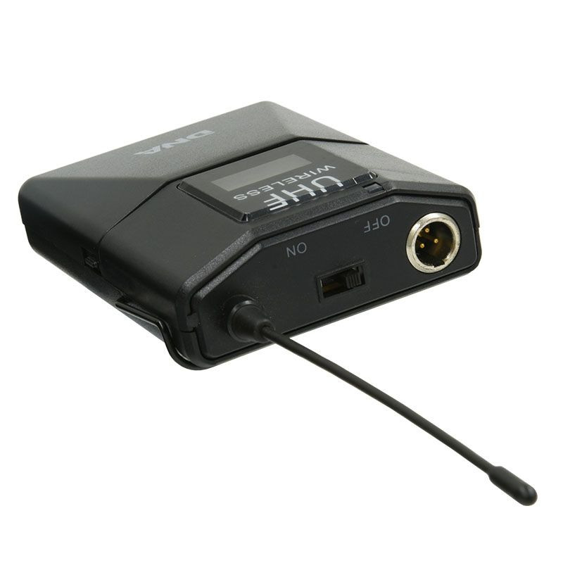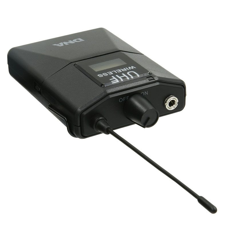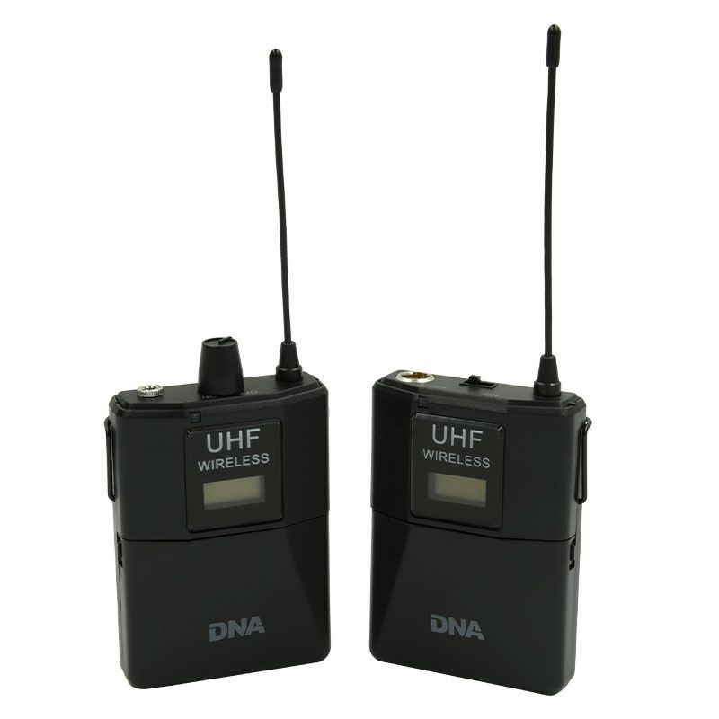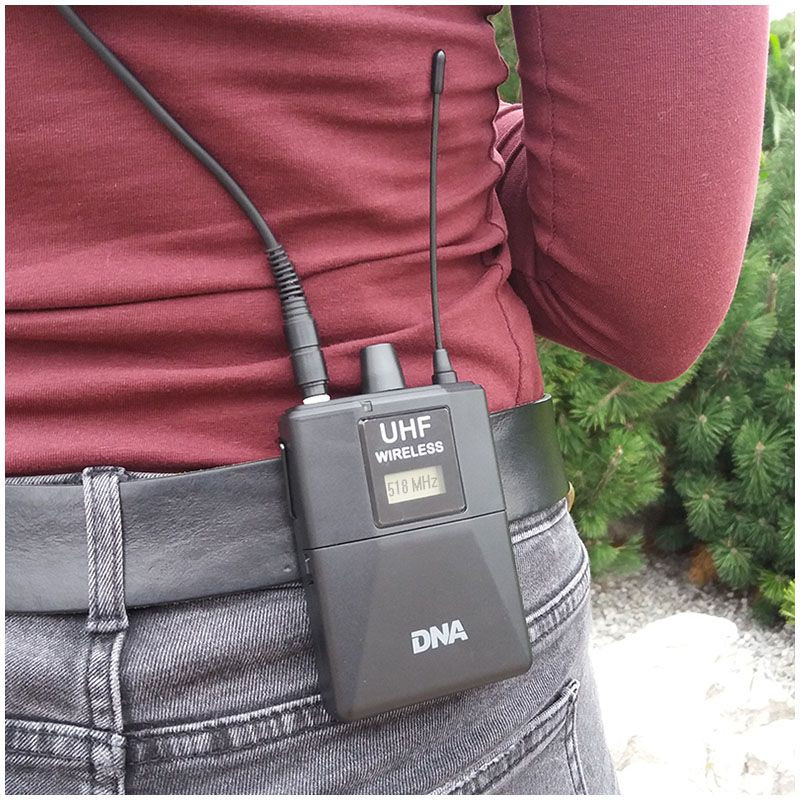 DNA CAMERA MIC to bezprzewodowy system nagłośnienia do kamery, aparatu fotograficznego, cyfrowej lustrzanki DSLR, telefonu, smartfona, a także tabletu, laptopa, komputera stacjonarnego lub innego urządzenia przetwarzającego dźwięk. W skład zestawu wchodzą dopaskowy nadajnik (beltpack), odbiornik, 2 przewody ze złączami jack stereo (TRS) 3,5 mm, 4 baterie AA 1,5V oraz solidna walizka. Sprzęt doskonale sprawdza się podczas różnego typu nagrań wideo, prowadzenia wywiadów, wykładów lub prezentacji przed kamerą.