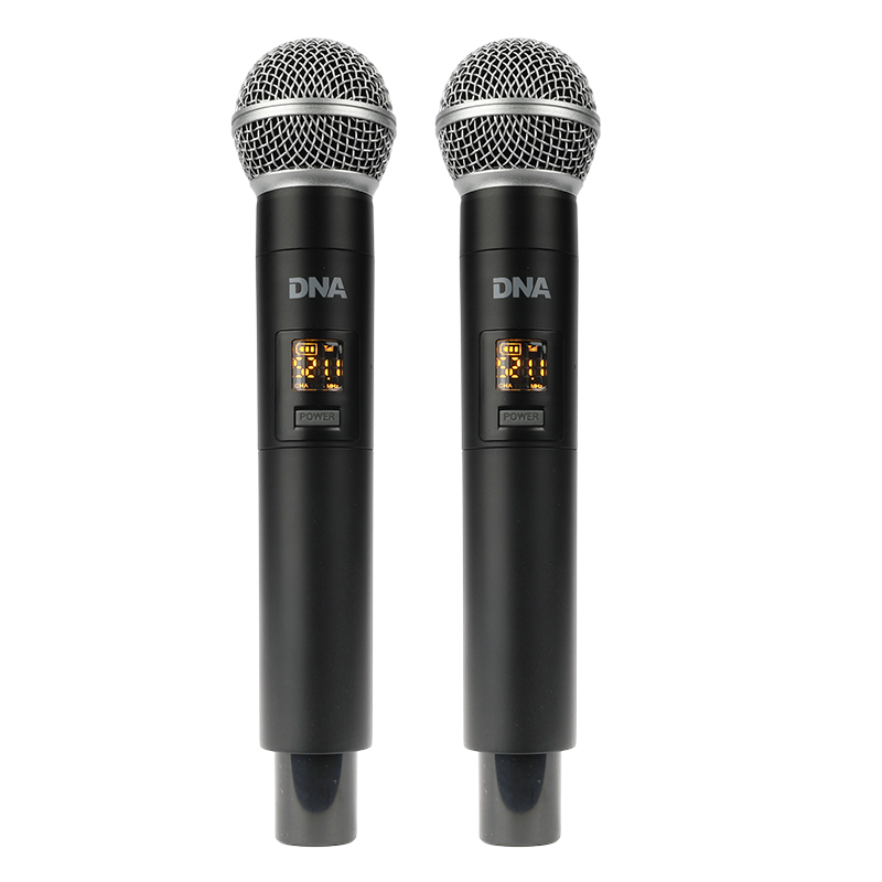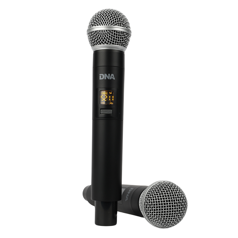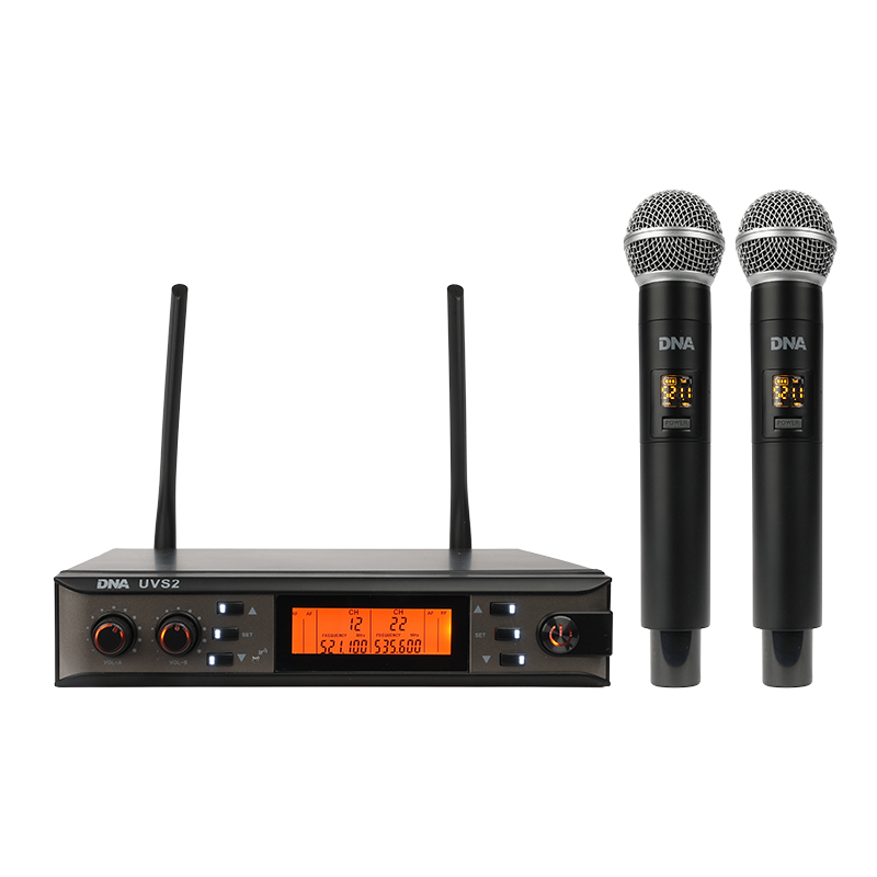 DNA UVS 2 to wysokiej jakości bezprzewodowy system nagłośnienia oparty na technologii cyfrowej. Zestaw składa się z dwóch bezprzewodowych mikrofonów oraz niewielkiego, kompaktowego odbiornika fal UHF. Idealnie sprawdza się jako nagłośnienie dla zespołu weselnego, firm eventowych, animatorów gier i zabaw, zestaw mikrofonów do karaoke, a także dla różnego typu instytucji kulturalnych i oświatowych.