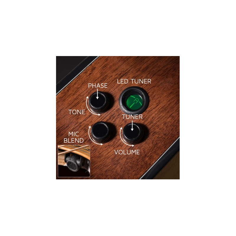 Dźwięk starych instrumentów jest jak Święty Graal.Przez wiele lat drewno wykorzystane do budowy utwardza się i pracuje. dzieki temu instrument brzmi. Brakuje tego nowym, nierozegranym instrumentom- do tej pory tak było. Używając specjalnego procesu, który nazywamy ATV (wiek do rocznika), traktujemy lity świerk sitka tak, aby nadać temu wielkiemu i otwartemu tonowi dziesięcioletniego, wysoce poszukiwanego akustycznego brzmienia. Ten proces toryfikacji sprawia, że ten niesamowity dźwięk wydobywany jest prosto z pudła rezonansowego.