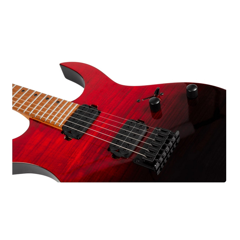 Gitara wyposażona jest w zestaw customowych humbuckerów Villain™ od Spira, które oferują potężne i precyzyjne brzmienie, doskonałe do rocka i metalu. Stały mostek i czarne blokowane klucze gwarantują znakomitą stabilność strojenia i precyzję.