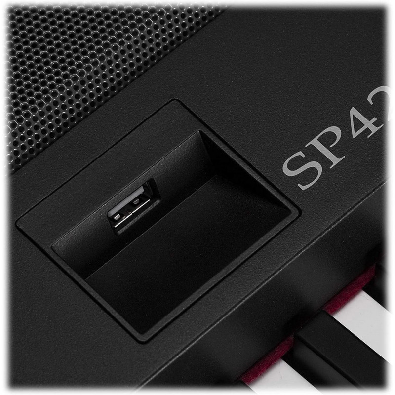 Mamy oczywiście pełną paletę brzmień pianin i fortepianów, wspieraną metronomem, czyli zapewnia typowo fortepianowe opcje. Pianino cyfrowe Medeli SP4200 wyposażono również we wszystkie funkcje charakteryzujące zaawansowane keyboardy, co sprawia, że jest idealnym wyborem nie tylko dla początkujących, ale też dla tych bardziej doświadczonych. Pamięć instrumentu oferuje 600 brzmień i 230 rytmów. Jest również funkcja nagrywania. USB obsługuje również zewnętrzna pamięć – do 32 Gb.