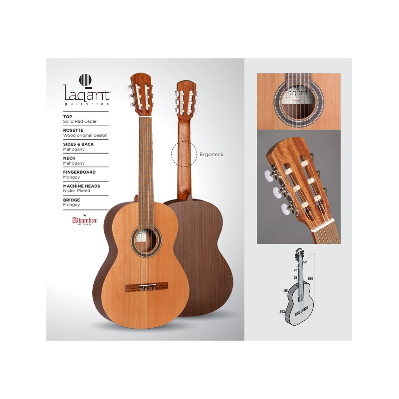 Model Lagant to najbardziej przystępna cenowo propozycja w ofercie hiszpańskiej manufaktury, słynącej z doskonałych gitar klasycznych. To doskonały wybór dla osób rozpoczynających przygodę z gitarą i wszystkich, tych, którym zależy na dobrym brzmieniu i porządnie wykonanym, wygodnym i trzymającym strój instrumencie.