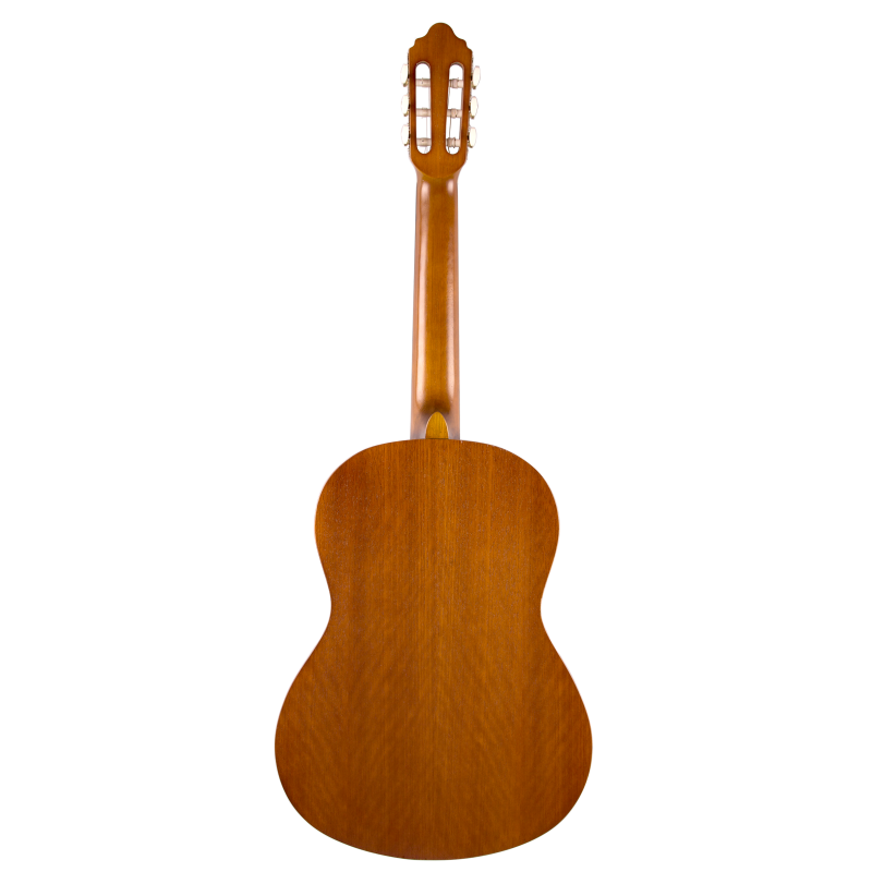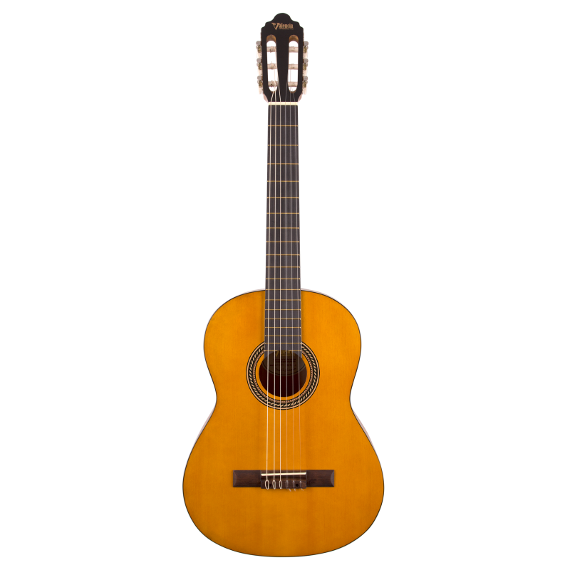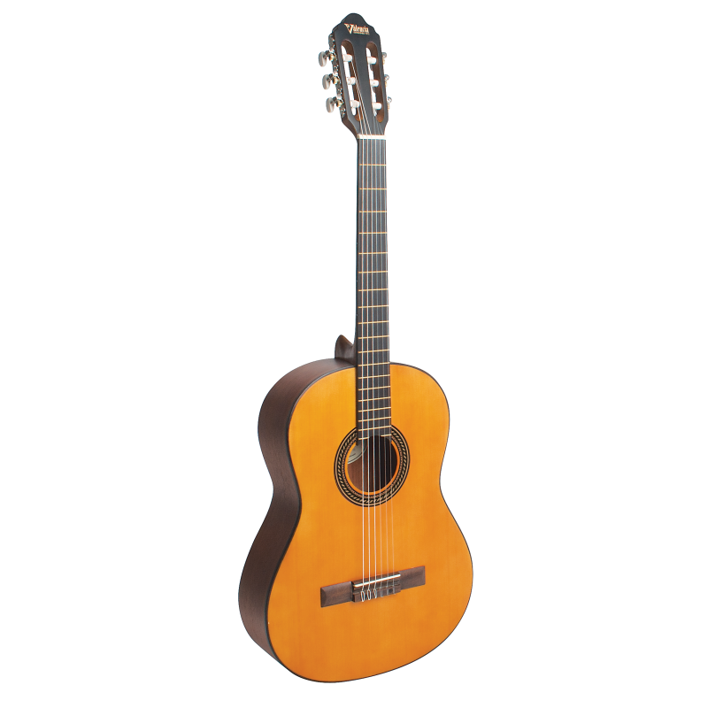 Valencia VC204 to gitara klasyczna, idealna dla początkujących muzyków. Model z serii 200 wyróżnia się wysoką jakością wykonania oraz przystępną ceną, co sprawia, że jest doskonałym wyborem także jako instrument do ćwiczeń dla bardziej zaawansowanych muzyków. Wierzchnia płyta wykonana ze świerku sitka zapewnia pełne brzmienie, a boki i tył z drewna nato dodają głębi. Gryf z drewna jabon, podstrunnica i mostek z czernionego mahoniu oraz siodełka z trwałego ABS gwarantują komfort i wytrzymałość. Klasyczne klucze o otwartej konstrukcji umożliwiają precyzyjne strojenie. Gitara wyróżnia się eleganckim wyglądem z matowym wykończeniem w stylu vintage, subtelną rozetą i estetycznym bindingiem. Valencia VC204 to świetne połączenie estetyki, jakości i brzmienia.