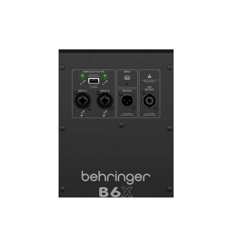Behringer B6X – Kompaktowy system nagłośnienia All-in-One o mocy 400W RMS, z zasilaniem AC 230V, łącznością Bluetooth, mikserem cyfrowym oraz efektami od TC Electronic, sterowany bezprzewodowo przy pomocy aplikacji.