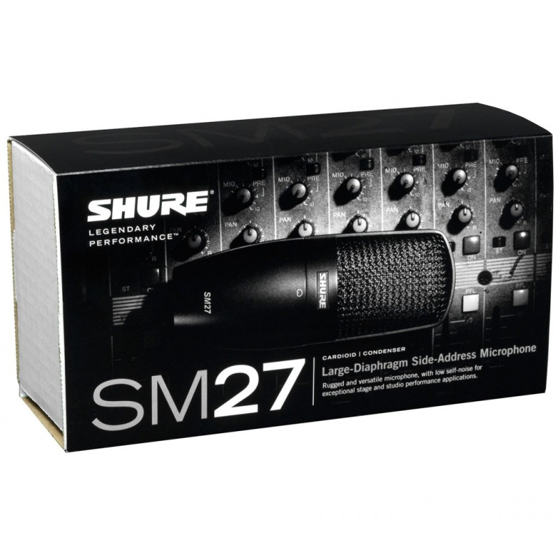 SHURE SM 27 LC to profesjonalny i bardzo wszechstronny mikrofon pojemnościowy o charakterystyce kardioidalnej, z dużą membraną skierowaną na bok. Dzięki swojej niepowtarzalnej konstrukcji świetnie sprawdza się podczas nagłaśniania wokalu prowadzącego i zespołów wokalnych, gitar akustycznych, instrumentów smyczkowych, dętych, a także centrali perkusyjnej i zbierania dźwięku z głośników gitarowych lub basowych.