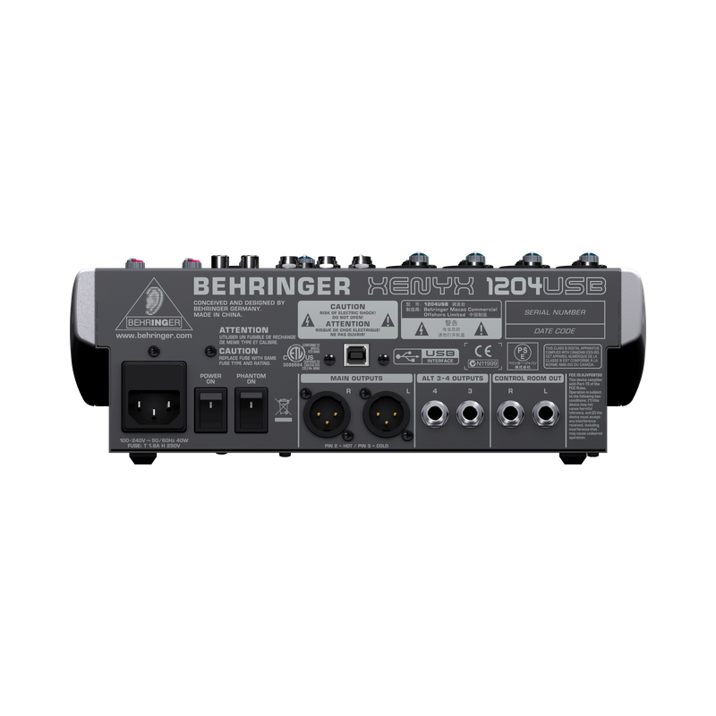 Behringer XENYX 1204USB - 12-kanałowy mikser XENYX 1204USB z 2/2 podgrupami, przedwzmacniaczami mikrofonowymi XENYX, kompresorami, klasyczną "brytyjską" korekcją oraz interfejsem audio USB.
