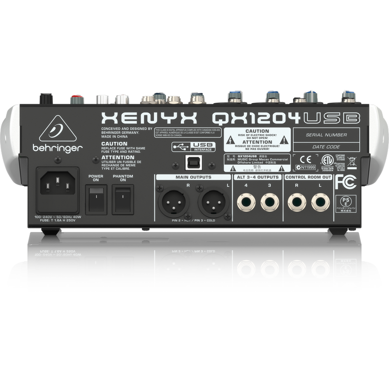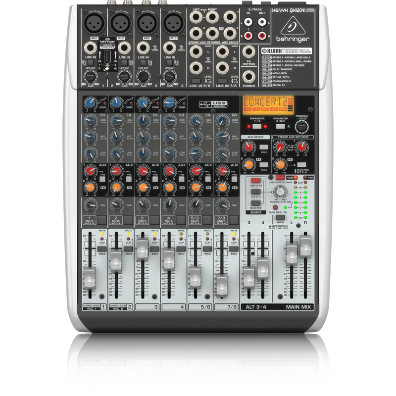 BEHRINGER XENYX QX1204USB - Ultra niskoszumowy, analogowy mikser XENYX QX1204USB z procesorem FX KLARK TEKNIK, 4 przedwzmacniaczami mikrofonowymi XENYX i indywidualnym zasilaniem PHANTOM.