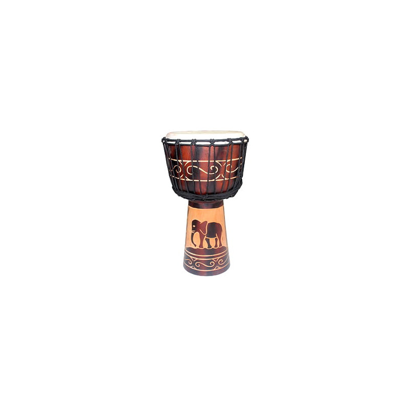 Djembe- tradycyjny, afrykański, drewniany bęben z RĘCZNIE wykonanymi rzeźbami oraz malowidłami. Za pomocą tego instrumentu można wydobyć wysokie tony oraz basy.