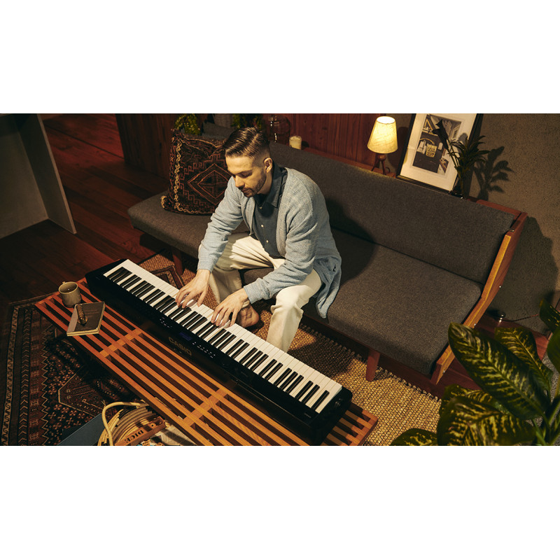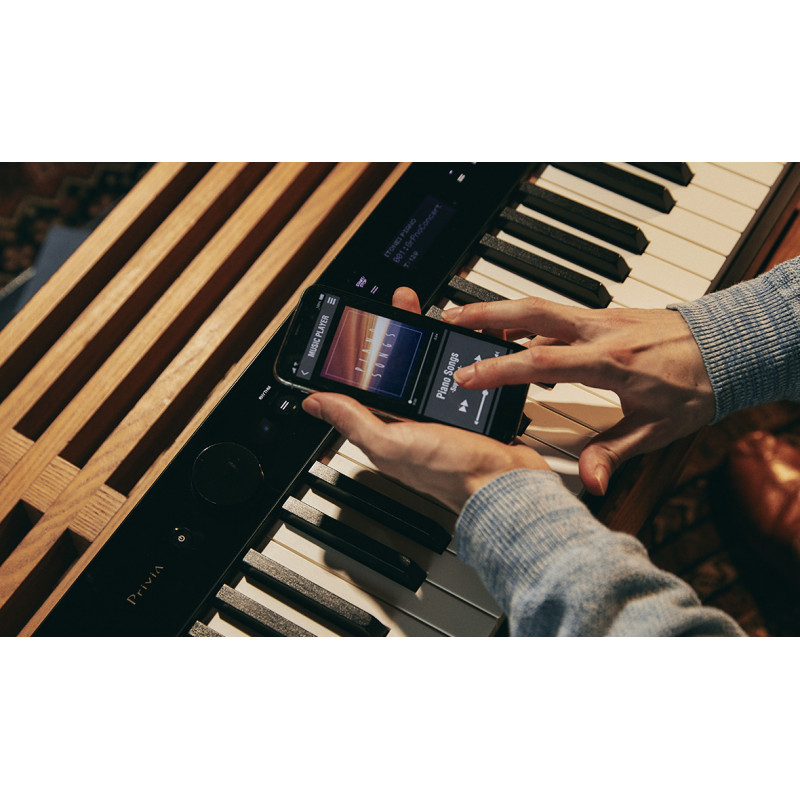 Do modelu PX-S1100 dołączony jest bezprzewodowy adapter MIDI i audio, dzięki czemu użytkownik może odtwarzać na nich swoje ulubione utwory jak przez głośnik Bluetooth®. Ponadto bezprzewodowe połączenie z kompatybilnymi urządzeniami za pomocą funkcji Bluetooth® Low Energy MIDI, pozwala poszerzyć gamę doświadczeń muzycznych –teraz możesz nie tylko grać, ale także samodzielnie się uczyć i produkować muzykę. Oprócz tego bezprzewodowe połączenie z dedykowaną aplikacją Chor dana Play for Piano, w intuicyjny sposób zmieniać ustawienia brzmienia i funkcji.