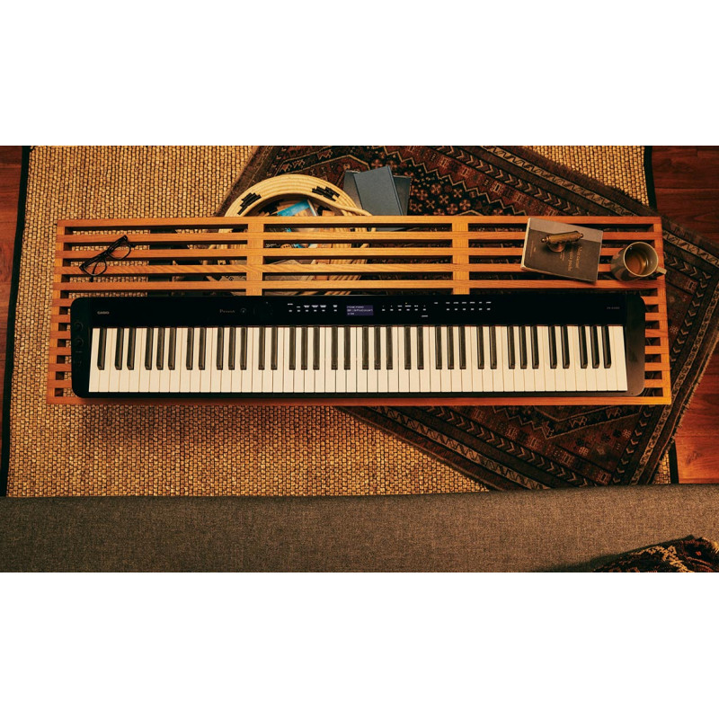 Casio przeprojektowało wewnętrzną strukturę głośników, dzięki czemu dźwięk zyskał dodatkową lekkość, przestrzeń i klarowność oraz stał się bogatszy. Chociaż Stylistyka konstrukcji jest minimalistyczna i przejrzysta, gustowne złote litery na obudowie i inne miłe akcenty przydają mu elegancji z wyższej półki.