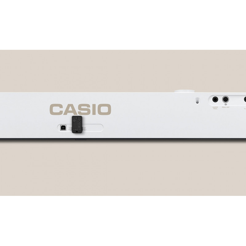 Do modelu PX-S1100 dołączony jest bezprzewodowy adapter MIDI i audio, dzięki czemu użytkownik może odtwarzać na nich swoje ulubione utwory jak przez głośnik Bluetooth®. Ponadto bezprzewodowe połączenie z kompatybilnymi urządzeniami za pomocą funkcji Bluetooth® Low Energy MIDI, pozwala poszerzyć gamę doświadczeń muzycznych –teraz możesz nie tylko grać, ale także samodzielnie się uczyć i produkować muzykę. Oprócz tego bezprzewodowe połączenie z dedykowaną aplikacją Chor dana Play for Piano, w intuicyjny sposób zmieniać ustawienia brzmienia i funkcji.