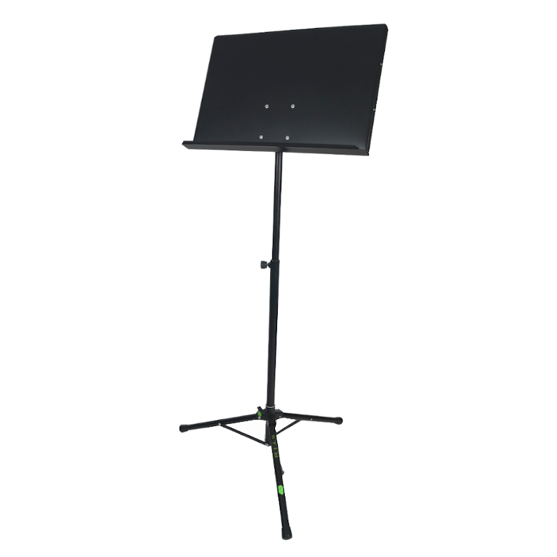 Statyw wysoki wraz z dokręcanym pełnym pulpitem stalowym.