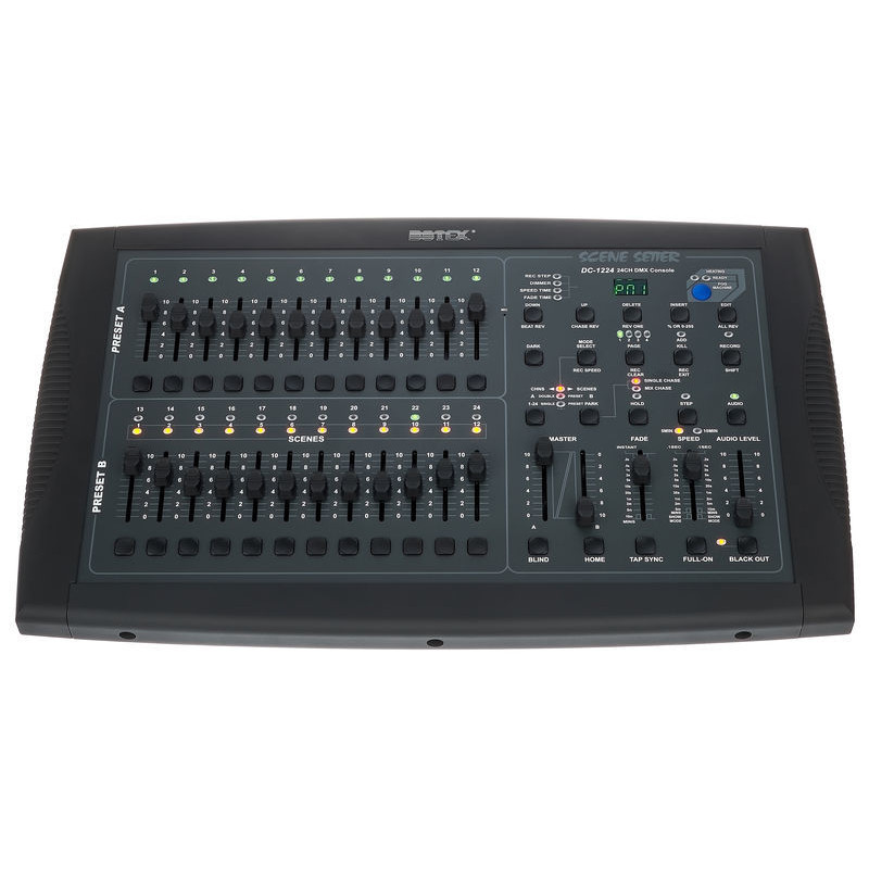 Cyfrowy sterownik oświetlenia posługujący sie sygnałem DMX-512. Obsługuje urządzenia posiadające do 24 kanałów sterowania. Nadaje się on idealnie do obsługi zarówno dimmerpaków, jak i urządzeń inteligentnych. Duża ilość kanałów dostępnych bezpośrednio na pulpicie umożliwia wygodną pracę "na żywo" przy asekuracji zaprogramowanych ustawień.