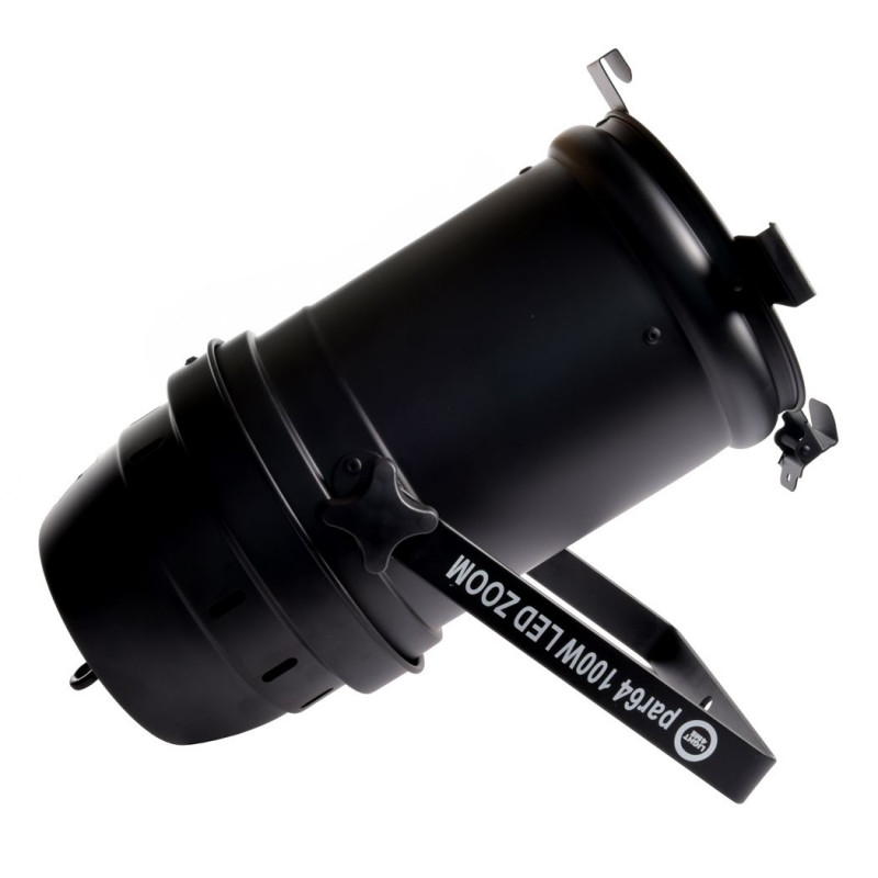 LIGHT4ME PAR64 100W LED ZOOM to profesjonalny reflektor punktowy LED. Zmienna ogniskowa, umożliwiająca tworzenie plamy świetlnej o różnej wielkości, możliwość stosowania filtrów dyfuzyjnych, 100 watów mocy oraz kontrola za pomocą sygnałów DMX tworzy z tego jupitera doskonały reflektor teatralny, który z powodzeniem może być również stosowany w studiach telewizyjnych.