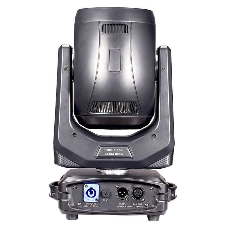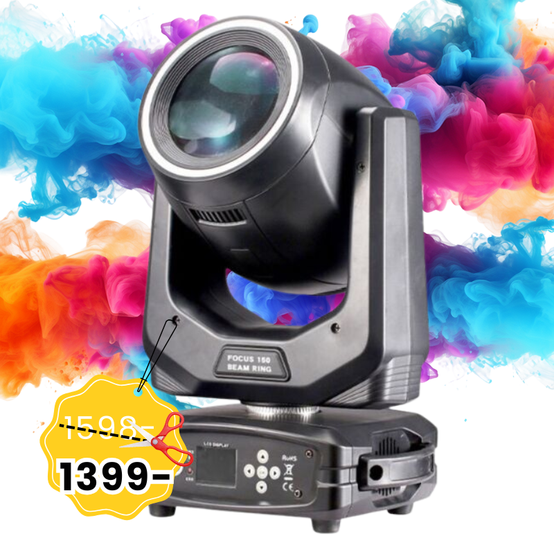 Light4Me 150 Beam Ring to zaawansowana głowica ruchoma LED typu beam, wyposażona w bardzo mocną, 150-watową białą diodę oraz dodatkowy pierścień z 24 diodami LED RGB 3w1 o mocy 0.2 wata każda, otaczającymi główną soczewkę. Urządzenie świetnie sprawdza się ✅ na scenach, w domach i ośrodkach kultury, na koncertach, występach, pokazach, galach i prezentacjach, w klubach tanecznych i dyskotekach, a także jako oprawa oświetleniowa dla mobilnych DJ-ów i zespołów eventowych. Dzięki swojej kompaktowej konstrukcji i lekkości, głowa jest niezwykle mobilna, przez co doskonale nadaje się zarówno do pracy w instalacjach stałych i przenośnych.