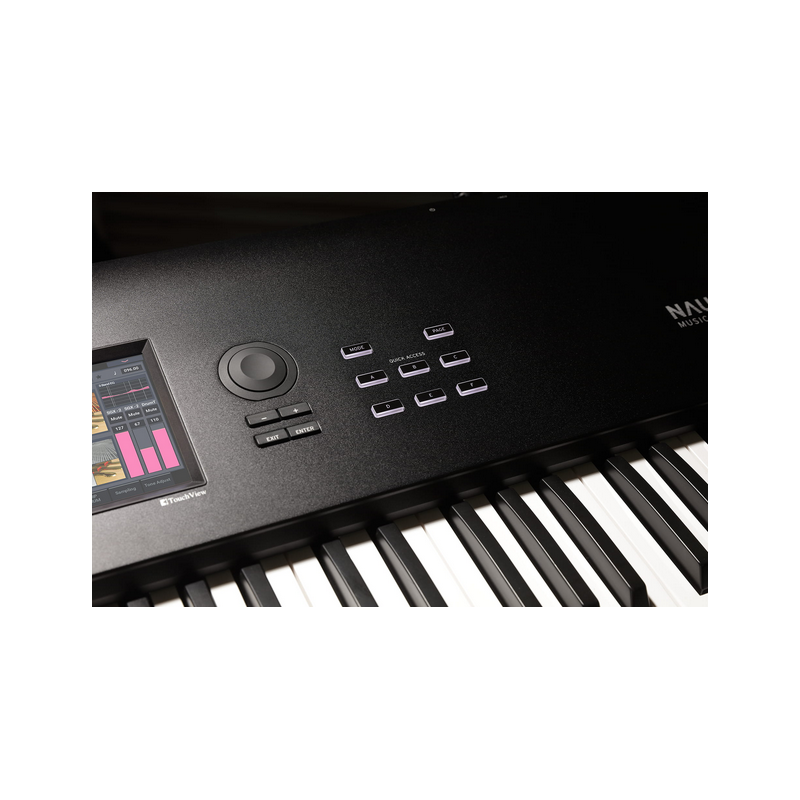 Sercem KORG NAUTILUS jest ogromny, 8-calowy (800 x 480 pikseli) kolorowy wyświetlacz dotykowy WVGA firmy KORG. Ekran dotykowy posiada unikalną funkcję Touch-Drag, która oferuje bardziej szczegółową kontrolę wartości parametrów. Interaktywne instrumenty i grafiki na panelu zapewniają komfort pracy i możliwość kontroli wszystkich parametrów, od regulacji pokrywy fortepianu po podłączenie patch kabla na modułowym modelu syntezatora. Wyświetlacz TouchView obsługuje również wygodną nową funkcję wyszukiwania, umożliwiającą wyszukiwanie (i podgląd) dźwięków na podstawie ich tytułów.