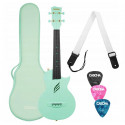 Zestaw zawiera miękki pokrowiec o grubości 5 mm, pasek do ukulele i trzy kostki.