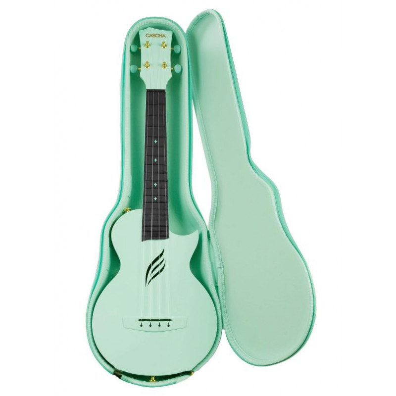 Ukulele Cascha Carbon przekonują swoją wyjątkowością i pięknym dźwiękiem. Instrument w całości wykonany jest z włókna węglowego. Dzięki temu ukulele jest łatwe do czyszczenia i ogólnie jest bardziej odporne na wpływy zewnętrzne takie jak temperatura czy wilgotność powietrza oraz opady. Taka technologia pozwala na uzyskanie trwałej i wysokiej jakości konstrukcji, która nie dość, że świetnie wygląda, to pozwala na uzyskanie jaśniejszego i bardziej zróżnicowanego tony w porównaniu do zwykłych ukulele. Niewielka waga i cienki korpus sprawiają, że instrument jest łatwy i przyjemny do grania, oferuje duży komfort bez jakiejkolwiek utraty jakości dźwięku.