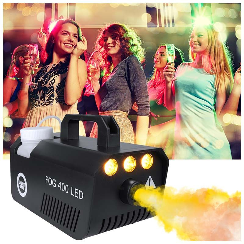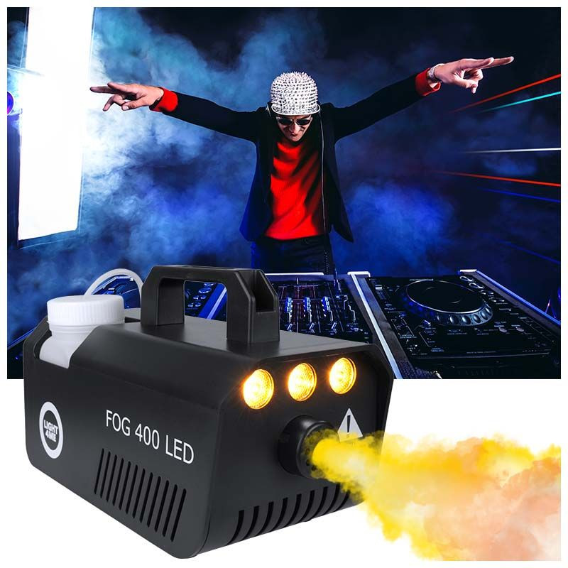 Light4Me Fog 400 LED to niewielka, lekka i mobilna, a jednocześnie bardzo wydajna wytwornica dymu z trzema bursztynowymi diodami LED podświetlającymi emitowaną parę. Urządzenie doskonale sprawdza się na tanecznych imprezach, dyskotekach, w klubach oraz pubach muzycznych, podczas koncertów, a także jako wytwornica dymu dla mobilnego DJ-a. Z powodzeniem stworzy też klimat na domówkach i imprezach z przyjaciółmi.